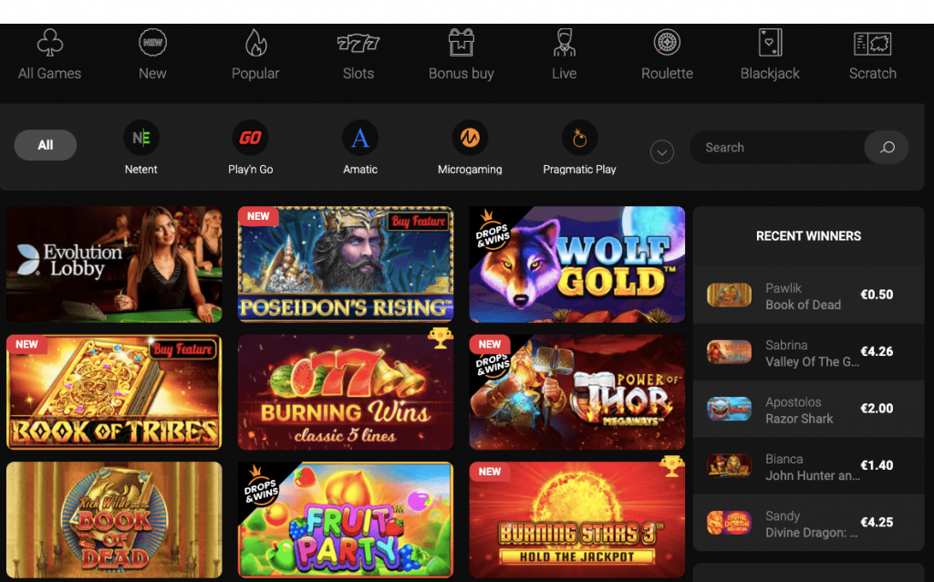 If you are new to online casinos, we recommend that you look for games developed by Netent and Microgaming. Just enter the name of the provider into the search box and you will get all the games created by the company. Evolution Gaming is the provider to look out for if you want to play live dealer games.